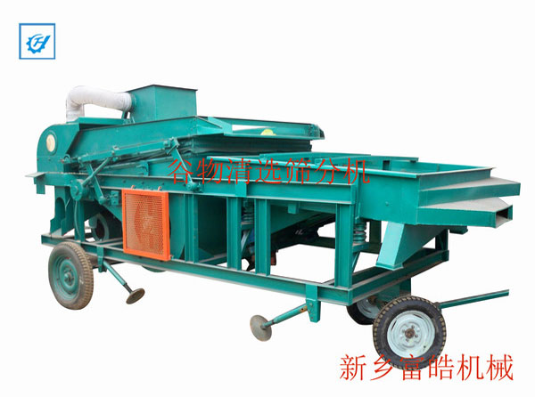 本機(jī)由機(jī)架及運(yùn)輸輪,傳動(dòng)部分,主風(fēng)機(jī)、重力分離臺(tái)、吸風(fēng)機(jī)、吸風(fēng)道、篩箱等組成,移動(dòng)靈活,更換篩板方便、性能良好等特點(diǎn)。
