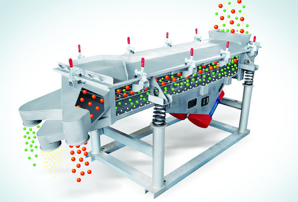 直線振動(dòng)篩利用振動(dòng)電機(jī)激振作為振動(dòng)源,使物料在篩網(wǎng)上被拋起,同時(shí)向前作直線運(yùn)動(dòng),物料從給料機(jī)均勻地進(jìn)入篩分機(jī)的進(jìn)料口,通過(guò)多層篩網(wǎng)產(chǎn)生數(shù)種規(guī)格的篩上物、篩下物、分別從各自的出口排出。具有耗能低、產(chǎn)量高、結(jié)構(gòu)簡(jiǎn)單、易維修、全封閉結(jié)構(gòu),無(wú)粉塵溢散,自動(dòng)排料,更適合于流水線作業(yè)。